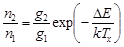 — статистические веса уровней. Если газ достаточно плотный и условия близки к локальному термодинамическому равновесию (ЛТР), то температура возбуждения равна температуре газа.