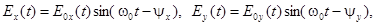 В общем случае радиоизлучение может содержать две компоненты – неполяризованную и поляризованную. При распространении излучения конец мгновенного вектора электрического поля волны, измеренного в некоторой фиксированной точке пространства, описывает эллипс (рис. 2.1). Выберем систему координат, ось z которой направлена вдоль волнового вектора (то есть, совпадает с направлением распространения, перпендикулярным плоскости рис. 2.1), а оси x и y лежат в плоскости рисунка. Компоненты вектора