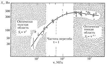 Рис. 2.2. Спектр тормозного излучения теплового радиоисточника (туманность Ориона).