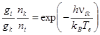 gi, gk – статистические веса уровней. В случае термодинамического равновесия справедливо распределение Больцмана: