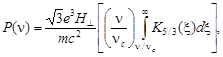 где K5/3 – функция Бесселя мнимого аргумента порядка 5/3, H^ == Hsinc – составляющая магнитного поля, перпендикулярная к вектору скорости электрона (угол c не слишком мал),