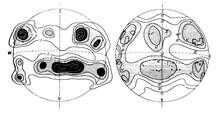Рис. 3.3. Карта Солнца на волне 21 см (слева) и изофоты короны в линии Fe XIV l5303 Å (справа).