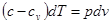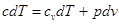 Для вывода уравнения политропного процесса в p-v координатах используем уравнения первого закона термодинамики, выраженные через энтальпию и внутреннюю энергию:
