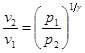 Таким образом, теплоемкость политропного процесса зависит от показателя политропы . Используя термическое уравнение состояния для идеального газа  и уравнение (8), можно получить соотношения между параметрами для конечного процесса 1-2: