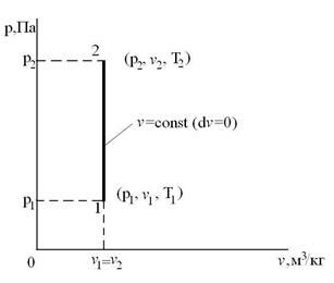 Изохорный процесс – это процесс сообщения или отнятия теплоты от газа при постоянном объеме v=const.