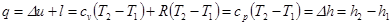 Зная значение коэффициента  в политропном процессе, можно определить теплоемкость c, теплоту q, изменение внутренней энергии  и работу расширения (сжатия) l.