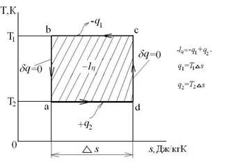 4-1 – изобарный процесс отвода теплоты q2 в окружающую среду.
