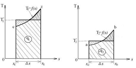 Таким образом, сравниваемые циклы заменяются на эквивалентные циклы Карно при использовании усредненных температур. Тогда термический кпд эквивалентного цикла Карно можно представить в виде: . Сравнение термических кпд различных эквивалентных циклов Карно между собой проводится при одинаковых предельных температурах:T1=Tmax и T2=Tmin. Сравним эквивалентные циклы А, Б, В с К- циклом Карно: