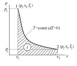 При Т=const из уравнения состояния  имеем:  - это уравнение изотермического процесса является уравнением равнобокой гиперболы.