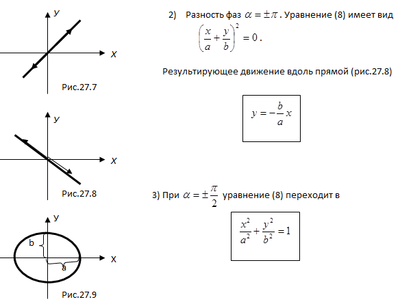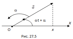 Колеблющаяся точка перемещается по этой прямой (рис.27.7).