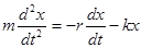 где r – коэффициент сопротивления, т.е. коэффициент пропорциональности между скоростью и силой сопротивления, уравнение движения приобретает вид