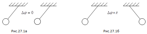 В качестве примера на рисунке 27.1 представлены математические маятники в крайних положениях с разностью фаз колебаний