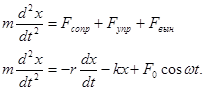 - частота вынуждающей силы. Уравнение движения запишется с учетом всех сил (