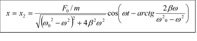 Функция (14) описывает установившиеся вынужденные гармонические колебания с частотой, равной частоте вынужденной силы.