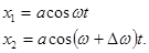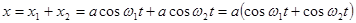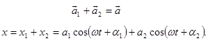 Рассмотрим сложение двух гармонических колебаний одинакового направления. Смещение х колеблющегося тела будет суммой смещений