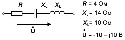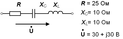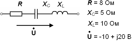 Для приведенных схем определить: полное комплексное сопротивление цепи, входной ток и мощность цепи. Построить векторную диаграмму напряжений и токов.