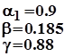 Некоторые значения коэффициентов a, b, g.