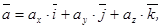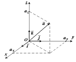 В дальнейшем будем рассматривать правую декартову систему координат. Единичные вектора вдоль осей Ox, Oy и Oz образуют систему единичных (или базисных) векторов. Любой вектор, имеющий начало в точке O, можно представить как сумму