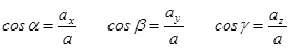 Направляющими косинусами cos(a), cos(b), cos(g) вектора называются косинусы углов между вектором и положительными направлениями осей Ox, Oy и Oz соответственно.