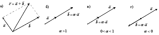 Операции над векторами подчиняются следующим законам (см. рис. 1-2):