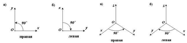 Рассмотрим декартовы системы координат в пространстве (см. рис. 1-4).