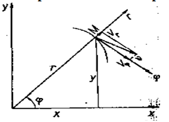 Если движение точки в плоскости Оху задано в полярных координатах: г = г (t); φ = φ (t), то, выражая декартовы координаты через полярные (рис. 40), получим х = r cos φ, y= r sinφ. Проекции скорости υ на оси декартовых координат будут