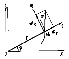 Пусть движение точки М в плоскости Оху задано в полярных координатах г = г (t); φ = φ (t). Декартовы координаты выражаются через полярные по формулам