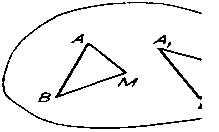Нетрудно показать, что, зная движение некоторого отрезка плоской фигуры S, можно определить движение всей фигуры. Пусть отрезок АВ плоской фигуры занимает положение, указанное на рис. 68. Положение произвольной точки М плоской фигуры определим, соединив эту точку с точками А и В отрезка. Если отрезок АВ изменит свое положение и перейдет в новое положение А1В1, то для определения нового положения этой точки достаточно построить треугольник А1В1М1, равный треугольнику АВМ. Так как стороны треугольников, как расстояния между двумя точками абсолютно твердого тела, остаются неизмененными, то А1В1 = АВ; АМ= А1М1; ВМ =В1М1. Таким образом, кинематика плоско-параллельного движения тела сводится к кинематике движения отрезка прямой на плоскости.