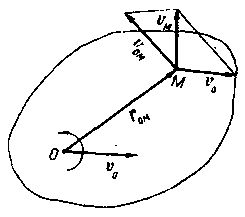 Относительным движением является вращательное движение вокруг полюса. Поэтому, обозначая радиус-вектор точки М относительно полюса О через rOM , согласно формуле Эйлера, для относительной скорости точки М получим