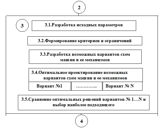 Любая машина выполняет свой рабочий процесс посредством механического движения. Поэтому она должна иметь носителя этого движения, каковым является механизм или система механизмов. Следовательно, составной частью общего процесса проектирования машины является проектирование ее механизмов. Оно включает разработку и анализ возможных вариантов схем машины и ее механизмов и оценку полученных решений методами оптимизации (см. рис. 1.2). Поиск оптимального, т.е. наилучшего решения для каждого варианта, как правило, ведется с использованием итерационных алгоритмов, которые поддаются формализации и должны быть реализованы на ЭВМ.