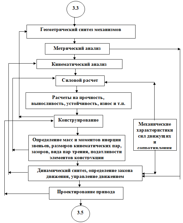 случае, когда создается новая машина, не имеющая близких аналогов, но и тогда, когда необходимо получить более высокий качественный уровень одного или нескольких параметров машины с уже существующей кинематической схемой. Последовательность проектирования показана на рис. 1.1.