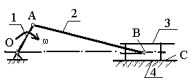 Рассмотрим простейший кривошипно-ползунный механизм: