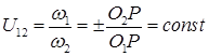 Общая нормаль в контактной точке сопряжённых профилей проходит через полюс зацепления и делит линию центров на части, обратно пропорциональные угловым скоростям.