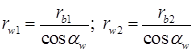 По свойству центроид начальные окружности с радиусами rw1 и rw2 перекатываются без скольжения.