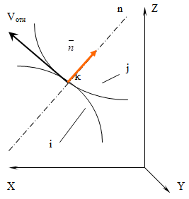 Теорема доказывается «от противного». Если условие теоремы не выполнено, т.е. общая нормаль n-n к выбранным поверхностям не перпендикулярна относительной скорости Vотн., то имеется составляющая этой скорости, направленная по общей нормали, и, следовательно, происходит либо отрыв одной поверхности от другой, либо вдавливание, что невозможно.