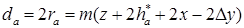 у = 0, то da = m(z + 2ha*), h = m(2ha* + с*), и при стандартных значениях ha* = 1,0 и с* = 0,25 получим da = m(z+2) и h = 2,25m.