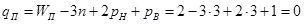 В общем случае решение уравнения (2.2) - трудная задача, поскольку неизвестны W и q; имеющиеся способы решений сложны и не рассматриваются в данной лекции. Однако в частном случае, если W, равное числу обобщенных координат механизма, найдено из геометрических соображений, из этой формулы можно найти число избыточных связей (см. Решетов Л. Н. Конструирование рациональных механизмов. М., 1972)
