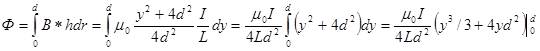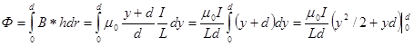 Для нахождения индуктивности единицы длины двухполосной линии найдем поток вектора