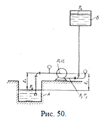 ля определения приращения удельной энергии (напора) рассмотрим работу насоса по перекачке жидкости из резервуара А в резервуар Б (рис. 50).