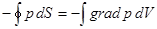 от давления, взятому по поверхности рассматриваемого объема. Преобразуя его в интеграл по объему, имеем:
