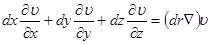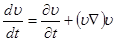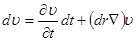 берется при постоянных х, у, z, т.е. в заданной точке пространства. Вторая часть изменения скорости равна