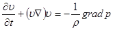 Мы можем теперь написать уравнение движения элемента объема жидкости, приравняв силу -grad p произведению массы