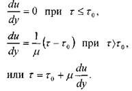 Среди неньютоновских жидкостей принято выделять вязкопластичные жидкости, псевдопластичные жидкости и дилатантные жидкости. Для вязкопластичных жидкостей характерной особенностью является то, что они до достижения некоторого критического внутреннего напряжения т0 ведут себя как твёрдые тела и лишь при превышении внутреннего напряжения выше критической величины начинают двигаться как обычные жидкости. Причиной такого явления является то, что вязкопластичные жидкости имеют пространственную жёсткую внутреннюю структуру, сопротивляющуюся любым внутренним напряжениям меньшим критической величины, это критическое напряжение в литературе называют статическим напряжением сдвига. Для вязкопластичных жидкостей справедливы следующие соотношения Бингама: