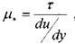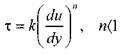 Для псевдопластичных жидкостей зависимость между внутренним напряжением сдвига и градиентом скорости относительного движения слоев жидкости в логарифмических координатах оказывается на некотором участке линейной. Угловой коэффициент соответствующей прямой линии заключён между 0 и 1 Поэтому зависимость между напряжением и градиентом скорости можно записать в следующем виде:
