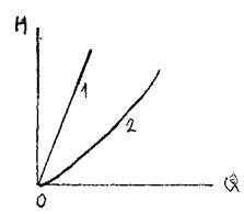 График уравнения простого трубопровода  носит название его гидравлической харак­ теристики. Вид гидравлической характеристики зави­сит от режима движения жидкости в трубопроводе: при ламинарном движении жидкости гидравлическая характеристика трубопровода - прямая линия, проходящая через начало координат (1). При турбулентном режиме гидравлическая характеристика - парабола (2).