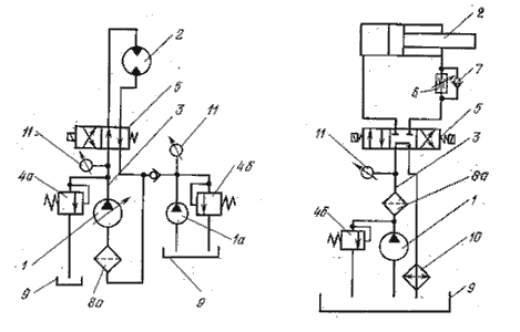 Работа гидроагрегатов сопровождается утечками рабочей жидкости. В гидросистемах с замкнутой циркуляцией утечки компенсируются специальным подпитывающим насосом 1а (рис.1.2, а).