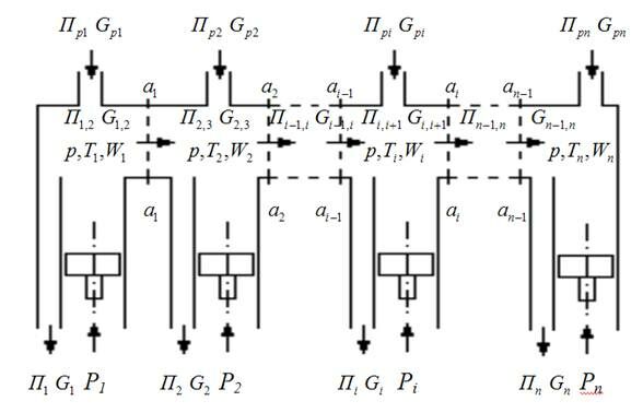 , а затем последовательно значения всех расходов перетечек. Направление перетечек определяется знаком выражения во внешних скобках формулы (1.73), а потому неоднозначность выражения для