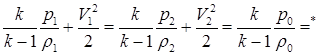 Рассмотрим течение газа по теплоизолированной трубе постоянной площадью сечения S. В начале трубы и далее на некотором протяжении скорость газа V1, параметры газа