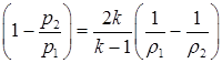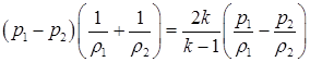 до и после скачка. Это уравнение называют ударной адиабатой Погоино. Для его получения надо из зависимостей (1.56), (1.57), (1.58) исключить скорость: