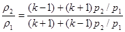 Зависимость между плотностью газа и давлением после и до скачка уплотнения выражается уравнением